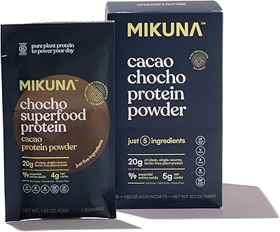 Mikuna Chocho Superfood Protein, Plant-Based Protein Powder, Travel Packs - Vegan, Gluten Free, 3g Net Carbs or Less, and Bioavailable, Non-Isolate 8 Servings, Cacao