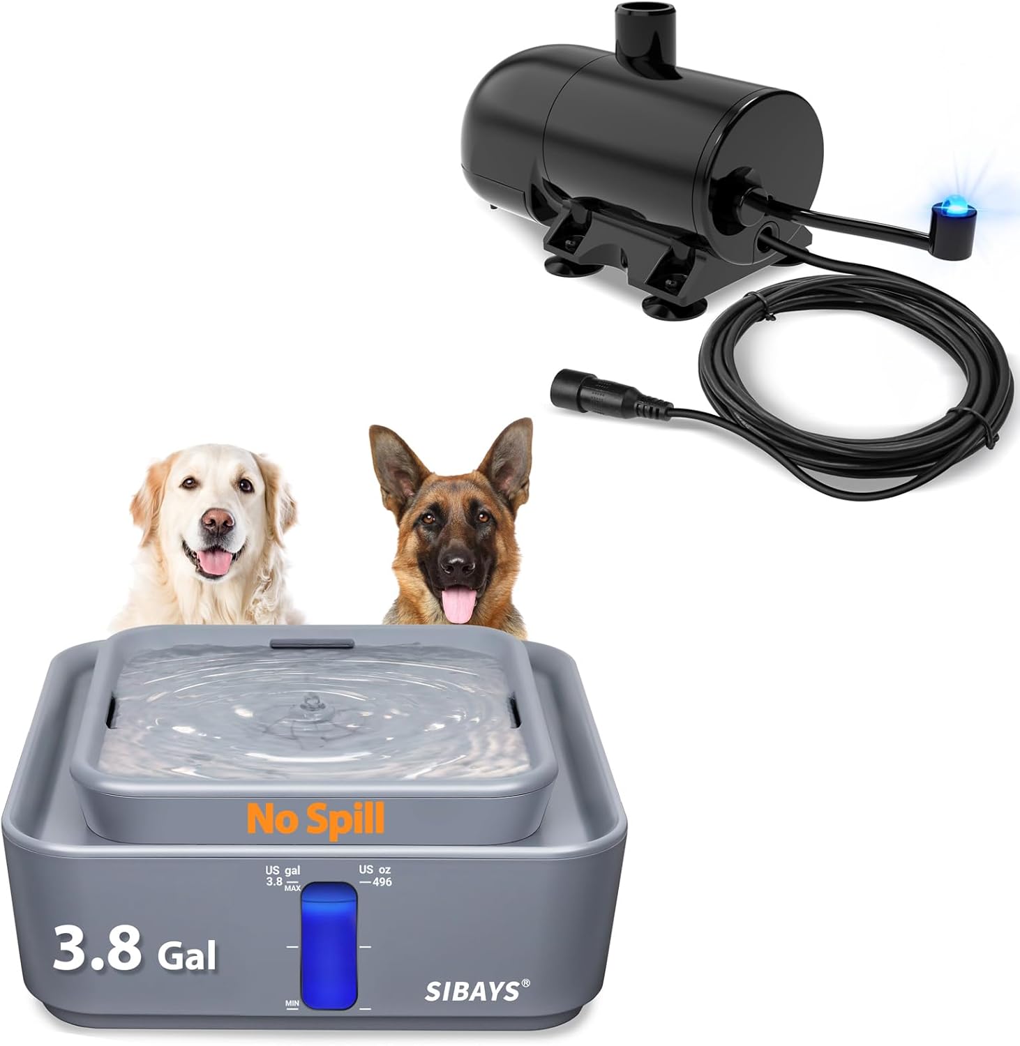 SIBAYS Dog Water Fountain for Large Dogs, 3.8Gal 14L Pet Fountain for Cats, Automatic Dog Water Bowl Dispenser with Replacement Water Pump, Ultra Quiet